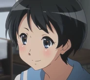 Hisae is a fairly tall teenage girl with quite short black hair and bluish-grey eyes.