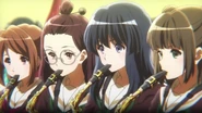 Kiriko Miya (宮 キリコ Miya Kiriko) is a supporting character in the Sound! Euphonium series. She was a student at Kitauji High School two years above Kumiko Oumae who played alto saxophone and occasionally soprano saxophone in the Kitauji High School Concert Band.