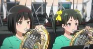 Lala Hitomi (瞳ララ, Hitomi Rara) is a supporting character in Sound! Euphonium series. She is a student at Kitauji High School in the same year as Kumiko Oumae who plays horn in F in the school's concert band.